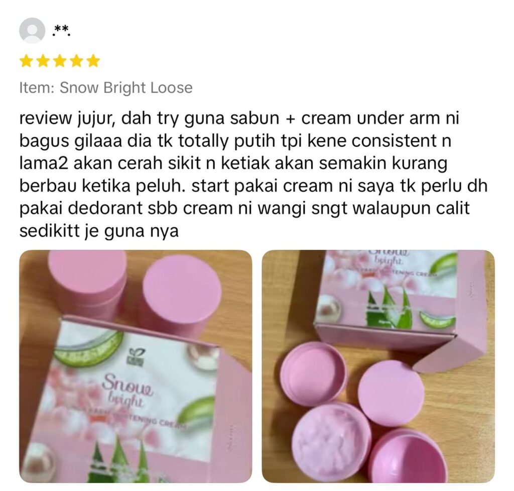 (ketiak, celah paha, siku, lutut & lipatan badan) Tekstur ringan, tak melekit & cepat meresap